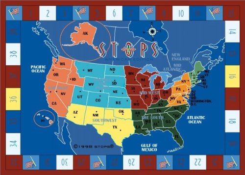 Joy Carpets is the leader in the design and manufacture of specialty broadloom, modular carpet rugs and mats for creative and eye-catching interiors. We take pride in providing industry-first floor coverings to residential educational hospitality healthcare and commercial markets. Joy pioneered fine gauge tufting and introduced the first recreational carpeting Games People Play to the industry in 1973. Since that time we have continued our commitment to meeting the unique needs of our customers by providing only the highest quality products through cutting edge technology and design. Joy Carpets has established a solid reputation for unsurpassed design and manufacturing of educational game and specialty flooring. Our products are made in the USA and can be found around the globe. By using only the highest quality yarns injection dye processes and innovative backing systems Joys products deliver outstanding performance in residential to heavy commercial environments. We stand behind our products with comprehensive warranties. When creative colorful and versatile flooring is needed for that unique residential hospitality or commercial installation look with confidence to Joy Carpets to satisfy your needs. We offer the best quality value warranty and service in the industry. Remember fun never goes out of style so choose Joy Carpets for the fastest way to a fantastic floor! Help your children learn more about the United States with this rug based on the award-winning geography trivia game STOPS . Students can play the game on the rug as they answer questions ranging from landmarks and state capitals to American History. Backing: SoftFlex. Joy Tuff Rug Lifetime Limited WarrantyYou will not be disappointed with