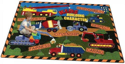 "Buy Joy Carpets 1551C Kid s Building Character 5 ft.4 in. x 7 ft.8 in. 100 Pct. STAINMASTER Nylon Machine Tufted- Cut Pile Educational- Faith Based Rug" Overview