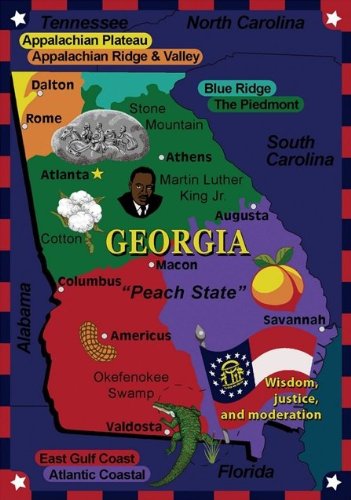 Joy Carpets 1562B State the Facts- Georgia 3 ft.10 in. x 5 ft.4 in. 100 Pct. STAINMASTER Nylon Machine Tufted- Cut Pile Educational Rug Feature