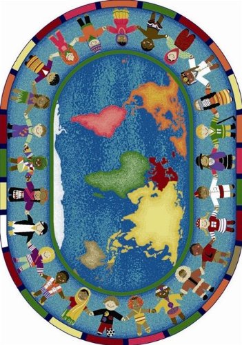 Joy Carpets 1488DD Hands Around the World 7 ft.8 in. x 10 ft.9 in. Oval 100 Pct. STAINMASTER Nylon Machine Tufted- Cut Pile Educational Rug Review